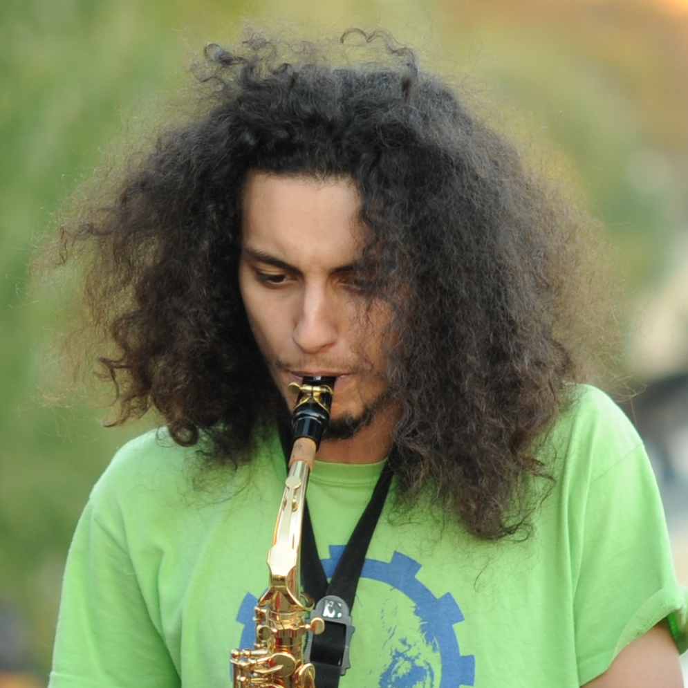 Il fait du sax, certes, mais ce n'est pas pour ça qu'il faut le malmener. Son calme et sa persévérance lui ont permi, en un et demi à peine, d'apprendre la musique jusqu'à devenir le chef musical de cette troupe !